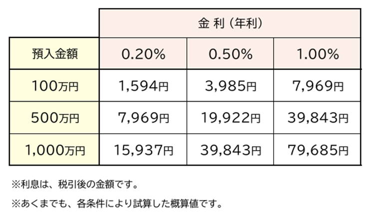 では1年預けたら、どれくらいの利息がつくのでしょうか?