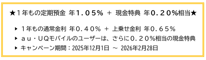 ★定期預金 冬の特別金利 最大 年1.25% 相当(税引前)