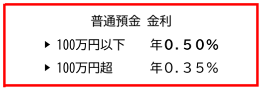 現在、大手都市銀行の普通預金金利は0.2%ですが、ネット銀行などでは、優遇金利で0.5%前後で預金することが可能です。
