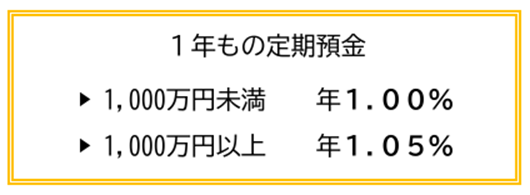 また、定期預金ならさらに高い金利で預金できます。新たに口座開設する場合など、1年もの定期預金のキャンペーンで1.0%前後の金利が適用されたりと、かなりおトクです。