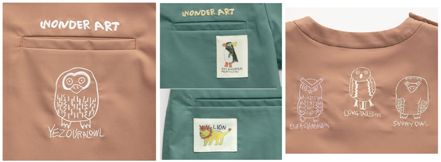 ホスピタルアートを原点に活動するNPO法人ワンダーアートとのコラボによるコレクションは、動物たちの生命力や温もりが表現されていて、医療現場で働く方々の力になれるようにとの想いが込められています。